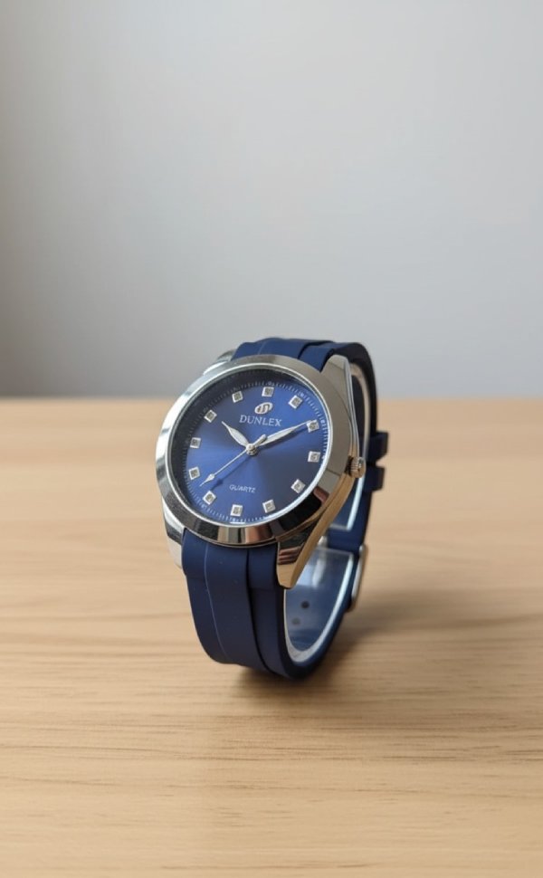Upgrade your style with the Dunlex Quartz Watch, designed for men who appreciate elegance and everyday comfort. Featuring a bold blue dial with crystal-style hour markers, this timepiece adds a touch of luxury to your wrist. The durable stainless-steel case pairs perfectly with the sleek blue silicone strap, offering both style and comfort for daily wear.